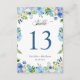 Blått Hydrangea Blommigt Bröllop Bordsnummer Card. (1) Anpassa mallen en efter en (t.ex. från nummer 1 till xx) och lägg till varje nummerkort separat i kundvagnen. (2) Om du vill göra ytterligare anpassningar klickar du på länken "anpassa ytterligare" och användor verktyg som är utformat för att ändra mallen. (3) Kontakta mig om du behöver hjälp eller matchande artiklar.