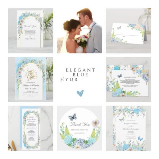 Blått Hydrangea-Bröllop-monteringskort för elegant