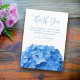 Tack för dina meddelandekort. Välj den utskrivna versionen, hämtningen eller båda vid behov. Vit papper med blå text. Anpassa med ett meddelande till bröllop eller duschgäster.