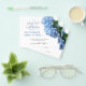 Budgetera spara datum meddelande med blå blommor. En del av designlinjen "Blue Heaven" är att den vita pappra har svart skript och tryckt typsnitt. Anpassa texten efter behov för händelsen. Söt, lätt blåa blommor med grönt dekorera ett kant. Omvänt är helblått