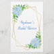 Det här möhippa-spelkortet är Hur väl känner du Bride? Det har tio frågor till spelare att besvara. Utformningen har vattenfärgsblå vattenblommor och faux guld-geometrisk design på baksidan. Anpassa kortens baksida med bridens namn. Matchande produkter är tillgängliga.