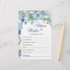 Blått Hydrangea Önskemål & Advice-kort. Anpassa med bruden till namn och duschdatum. Klicka på länken "anpassa ytterligare" för ytterligare anpassning. Kontakta mig om du behöver hjälp.