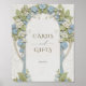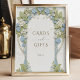 Ge dina gäster elegans med hjälp av det här förfinade "Cards and Gifts"-tecknet bröllop, som är perfekt inramat av en kaskad av blå hydrangeas, elfenbensfärgade blommar och lövgieneri. Den bågade blommigten gräns är försedd med berikande vattenfärgsdetaljer stil, ge tecknet med en botanisk charm utan tidslängd. Om du ställer in dig mot en mjuk bakgrund ger kombinationen av klassisk serif och känslig skripttypografi en lyxfärgad beröring. Oavsett om det visas på ett välkomnande bord eller i närheten av presenten station blandas detta tecken sömlöst med romantisk trädgård, vår eller bröllop-décor som inspirerats av vintage.