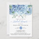 Blåvitkittelhydrangeas vattenfärgsfärgad blommigt inbjudningskort för möhippa. Anpassa namn, data och information.