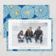 En söt illustration av japanska blommor i en färgrik blå och gul palett.