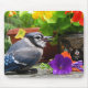 Denna färgrika mousepad presenterar en blått jay som har landat på ett farstubrodäck som omges av blommor. Den blått-, grått-, vit- och svartcolorationen av fågeln är fastställd av vid en tumult av färg. Det finns en dekorativ tekanna med orange- och gultnasturtiums och en purpurfärgad petunia. Gröntlöv avslutar denna kaleidoscope av färger.