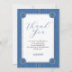 Blågul med sömmar och knappar pojke dusch Tack. Denna förtjusande, moderna och vismliga dusch i pojke.. Tack. Ni-kortet ger firande en aning denim-glädje! Utformningen har en realistisk blå bakgrund, komplett med äkta vita svampar och stampar som liknar sak. Ett skarpt vitt ram, som också är kantat av ömtåliga sömmar, visar ditt "Tack"-meddelande. Denim-knapparna accentuerar de fyra hörnen av ram och ger en lekfull och unik beröring. Uttrycket "Tack" tillför denna unika utformning ett inslag av söthet.