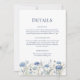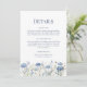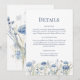 viktig information med dina gäster med hjälp av vårt kort för Bröllop-information om blå Wildblommor. Det här eleganten har en mjuk vattenfärgskonstruktion av blåa vilda blommor i Fransken, inklusive vattenväxter och blommor, som ordnats i en fin, naturinspirerad layout. Perfekt för att inkludera information som logi, anvisningar eller bröllop webbplats, detta djurutrymmeskort kompletterar bröllop teman för rustika, trädgård eller boho-chic. Helt anpassade, det tillför en sammanhängande och förfinad beröring till din bröllopsinbjudan samtidigt som du ser till att dina gäster har all information de behöver.