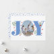 Blue Joy med bär julfotokort Helgdag. Den visar ord "JOY" med röda bär och grön vind medan brev "O" där är ditt foto. Baksidan innehåller blått polka dots.