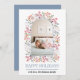 Berry och löv arch dammiga blått Glad helg-jul - icke-traditionellt fotokort för Helgdag. På framsidan av det här vackra kortet finns en båge ram som är gjord av bär och löv, texten "Glad helg" i dammig blå och ditt foto. Baksidan är av fast dammblått färg.