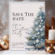 Med detta Spara datumkortet i helgdag som innehåller en vacker vattenfärgsblå Julgran, som är försedd med baublar från silver och accenter från guld. Denna utformning av eleganten är perfekt för party och säsong firande som är yrkesverksamma. Anpassa med din händelseinformation och se till att gästerna markerar sina kalendrar.