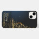 Julkortet har en elegant guldfärgad Julgran som består av mousserande stjärnor på mörk blått bakgrund. God jul i gyllene, böjda bokstäver som stilistigt stryper den festliga designen. 🎄 ✨