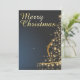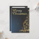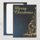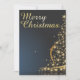 Julkortet har en elegant guldfärgad Julgran som består av mousserande stjärnor på mörk blått bakgrund. God jul i gyllene, böjda bokstäver som stilistigt stryper den festliga designen. 🎄 ✨