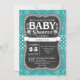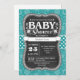 Blått kalkbrädesprogram för Teal Aqua Blommigt Bab Inbjudningar