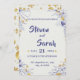 Den här inbjudan från elegant bröllop innehåller en texturerad vit bakgrund med en intensiv marin blå blommigt gräns och delikata accenter från guld. Den sofistikerade designen kombinerar klassisk och lyxig inslag för att göra din dag speciell.