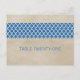 Elegant och sofistikerat vykort för Bordsnummer av Rustic Quatrefoil med en vintage med texturerad bakgrund och ett modernt gräns i mönster i royal blå. Enkel att anpassa, lägg helt enkelt till rätt bordsnummer i den text fält tillhandahåller. Klicka på Anpassa om du vill söka efter fler anpassningsalternativ.