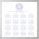 Blåa lila, handdragen växt, botaniska konsten löv bröllop, var vänlig hitta ditt säte och sittplan. Den här bord-diagramplanen är en enkel, tydlig klassik som är lätt att läsa 16 bord. Enkel löv-design som kretsar kring din egen initialer-design i monogram. Redigera med din bröllop eller med din händelseinformation och bord gäst namn. I lila blå skuggor och grått text på vitt. Andra färg och matchande artiklar är tillgängliga. © Original löv teckning och utformat av Sarah Trett för www.mylittleedenweddings.com på Zazzle.