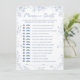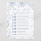 Gör din blå babydusch extra roligt med Personligen Blue Blommigt Baby Shower Mamma eller Pappa Game Card! Perfekt för babyduschidéer, det här spelkortet har en charmerande blommigt som passar perfekt för vår babyduschteman. Oavsett om du planerar en baby i blomman firande eller tittar för kreativ baby i bloomduschidéer, så är det här spelet ett underbart tillägg. En must-have for blommigt babyduschidéer, den passar perfekt in i blåa babyduschteman för pojkar och tillför upphetsning till dina vår babyduschidéer!