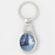 Blått månbelyst Magic Forest Winter Scene Ovalt Silverfärgad Nyckelring