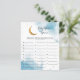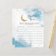 Tvätta över temat babyduschen "baby namn" i måne med vattenfärgen stänk i blått med faux måne och stjärnor i guld. Texterna kan redigeras. Perfekt att spela under duschen. Den ber gästerna att skriva ner barn namn som börjar med varje alfabet. Den som avslutar alla alfabet vinner först!