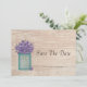 Den här blå Mason Burk Violets Bröllop spara datum-kungörelsen ger min Mouse Drawn Art. Underbar för Vintage bröllop.