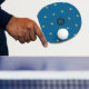 En klassisk avskärmning i icke-så klassiska nyanser av cerulablått skapar en roligt och ett uppdaterat mönster med en slutlig accent av ett metallliknande guld blandat i för att skapa en design som kommer att dyka upp i verkligen. Anpassa monogrammet på den här pingpongpaddeln med ditt första märke för att markera den som din egen.