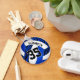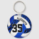 Den här sportliga flickans nyckelkedja med volleyball har en vild zebra ränder accent mönster på fyra av volleyballpanelerna - zebra ränder-panelerna har en blå bakgrund som står i kontrast till de resterande solida vita volleyball-panelerna - anpassa med spelare namn och jersey-nummer - efter katz_d_zynes
