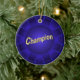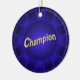 Denna dekoration dekoreras på ena sidan med ett blått band med texten "Champion" i ord i guld färgad och på den andra med enkel textanpassning.
