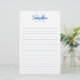 Välj din favoritbakgrund färg om du vill skapa ditt eget personlig monogram pappert lakan. Anpassa det blå moderna kalligrafteckensnittet och det ljusblå enstaka brev-klassiska monogrammet med olika snyggtar. Den här hemkontorsstationen som är papper för hennes skrivbord har en dubbelsidig utformning. Minimalistisk gåva.