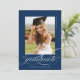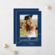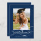Blå Modern Elegant Script Black White Studenten Announcement har ett vackert skript och ett skript för elegant, tillsammans med dina party-detaljer och ditt fullt på baksidan.