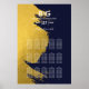 Blått monogram Bröllop-sätesdiagram för Faux Guld Poster