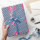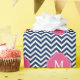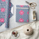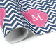 Blått & Monogram för Fuschia sicksackmönster Presentpapper