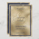 Ett tema med en chic sofistikerad elegant guld och marinblått monogram initialer snyggt minimalistiska bröllopsinbjudningar.