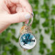 Blått mönster, grafik 3 rund silverfärgad nyckelring