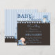 Den moderna inbjudan till babydusch för anpassadet har en baby & blå nalle på en strimlad blå och brun bakgrund. Anpassa den genom att lägga till information i det teckensnitt du väljer! com