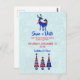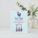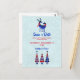 Spara vykortet Datum med en ljust grönt och vit snöbakgrund som tittar. Illustrerad med ett par blå skandinaviska hjortar med röda halsdukar. Med dekorativa markeringar på kropparna. En trio nordisk stil julgranar i blått och rött med stjärnor överst, under texten.