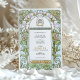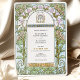 Den här häpnadsväckande bröllopsinbjudan, som inspirerats av Art nouveau, har ömtåliga blå och blommigtar med intrikat grönt på en mjuk himmel-blå bakgrund. Den unika och harmoniska utformningen framhävs av gyllene detaljer och flytande botaniskt inslag, vilket skapar en romantisk och tidlös känsla. Perfekt för trädgårdsbröllop, vintage eller elegant firande. Den här inbjudan tillför en del konst och sofistikering. Varje design är noggrant skapat och endast tillgänglig på Zazzle, vilket garanterar att bröllop-kontoret framträder som ett unikt konstverk.