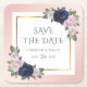 Underlägg i marinblått och bröllop spara datum med ett ram i guld som är dekorerat med ro. Matchande objekt är tillgängliga.