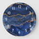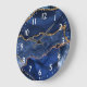 Blått och faux Guld Glitter marble Agate Stor Klocka
