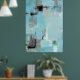 Blått och Grått Abstrakt Art Poster Skriv ut