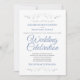 Den här vackra bröllopsinbjudan har en enkel och klassisk design av blått och grått på en vit bakgrund med silver faux foil blommigt gräns. Chic- och elegant-design som är både formell och enkel, med vackra skript.