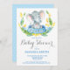 Kort för blått och för grått för inbjudan för pojkeelefantbaby shower. Pojkebaby showerinbjudan. Blomma och lämnor för vattenfärg blom-. Behaga klickar "skräddarsy den" knäppas och använder vårt designverktyg för att ändra denna mall för mer ytterligare customization.