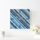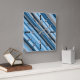 Den här fyrkantiga klockdesignen har randens färgad olika nyanser av blått och grått. Den har också rektanglar som markerar timmarna och siffror som anger timmarna 12, 3, 6 och 9.