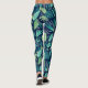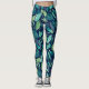 Blått och Grönt Botaniskt Blad Mönster Leggings