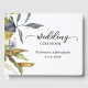 Vackra och moderna botaniska bladverk i mutade blues och gröntar gör en omhuldad Bröllop-gästbok!