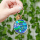 Blått och Grönt - Fläckfärgsfärgseffekt Rund Silverfärgad Nyckelring