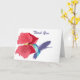Det här vackra, redigerbara tackkortet innehåller min målning av en blå och grönt Hummingbird mitt under flygning som matar från en röd Hibiscus mot en vanlig vit bakgrund. Snyggt jobbat med att matcha pub som perfekt.