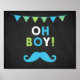 Blått och Grönt Mustache Chalkboard Baby Shower Poster