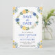 Blått och Gula blommor Wandan Bröllop Spara Datumet