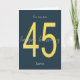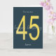 En personlig marinblått och guld 45-årsdagskort för honom. Framsidan har nummer 45 i en guld-övertoning med ett grattis på födelsedagen-meddelande. Du kommer lätt att kunna anpassa framsidan med namn, insidan av kortets födelsedag och baksidan med året. Det här 45-årskortet för honom i personlig skulle göra en underbar keepsaké.